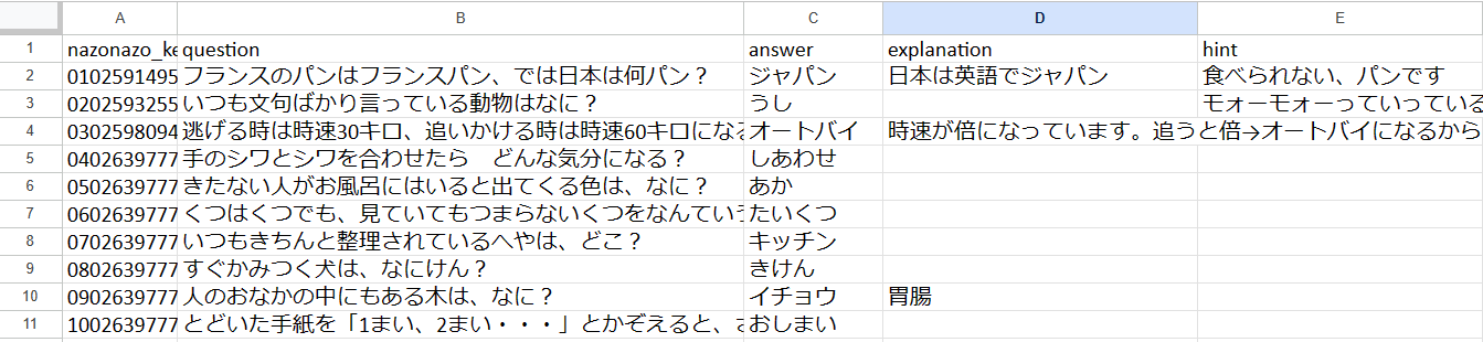 商用利用可能ななぞなぞ問題をExcel/csv形式でご提供します。
